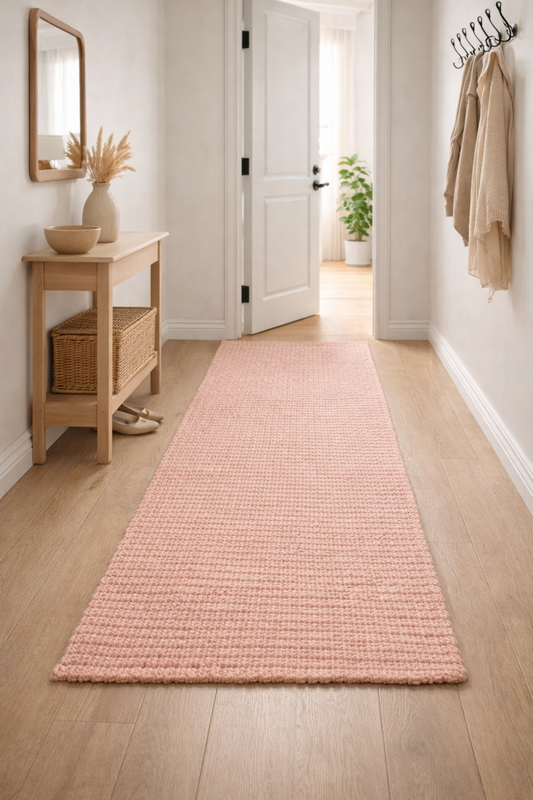 KÄSINKUDOTTU OLOHUONEEN MATTO - HAALEA ROOSA
