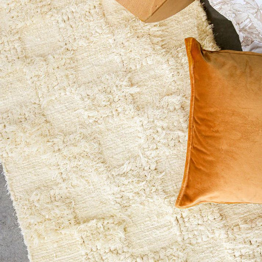 KÄSINKUDOTTU OLOHUONEEN MATTO - SHAKKIRUUTU - LUONNONVALKOINEN
