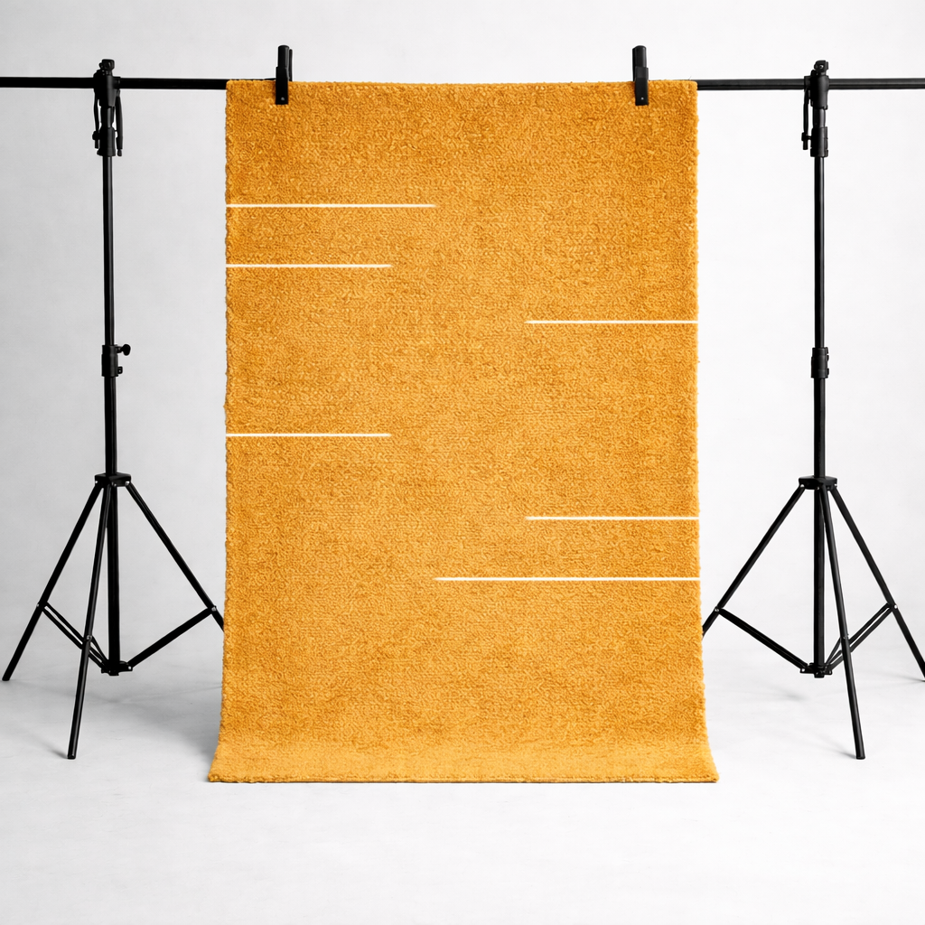 KÄSINKUDOTTU OLOHUONEEN MATTO - RAIDALLINEN SINAPINKELTAINEN