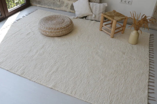 KÄSINKUDOTTU OLOHUONEEN MATTO - HELMIÄISVALKOINEN