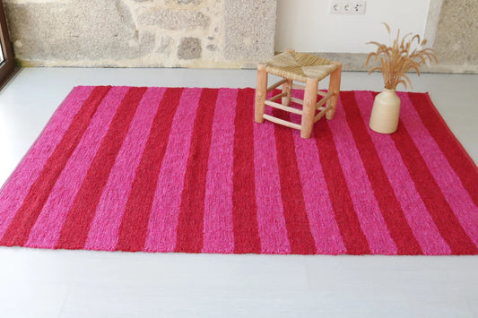 KÄSINKUDOTTU MATTO - PINKKI RAIDALLINEN 170x240cm