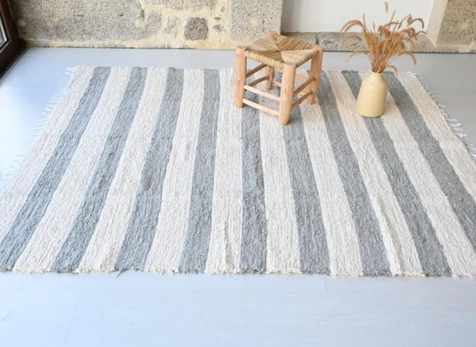 KÄSINKUDOTTU RUUTUMATTO - RAIDALLINEN 150x200cm